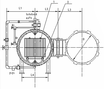 GT7C 型系列臥式殺菌鍋由鍋體、鍋蓋、開啟裝置、鎖緊楔塊、安全聯鎖裝置、軌道、滅菌筐、蒸汽噴管及若干管口等組成。鍋蓋密封采用充氣式硅橡膠耐溫密